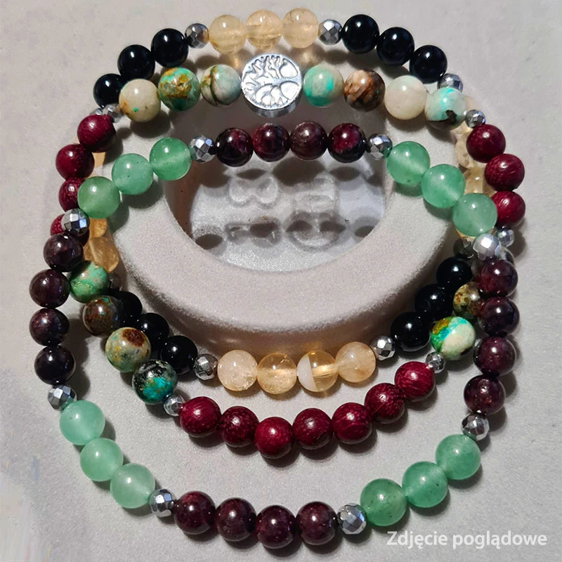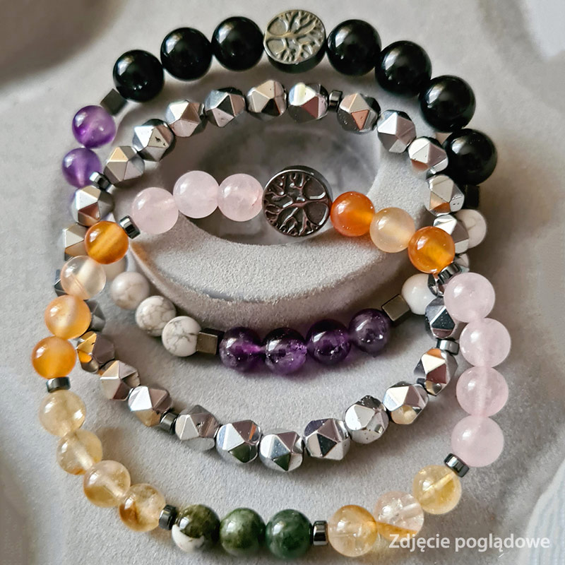 Trzy personalizowane bransoletki energetyczne z pojedynczych, bądź łączonych w pary minerałów, dopasowane do Twoich indywidualnych potrzeb energetycznych.